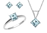 Cheap 10k White Gold, March Birthstone, Aquamarine Ring, Pendant and Earring Set, Ring Size 7