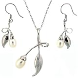 This was much prettier than the picture, it was hard to give it up as a gift.Get more detail about Silver Pearl Necklace Dangle Earring Modern Leaf Design Jewelry Set in Gift Box Bucasi SALE.