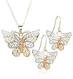 Cheapest 10k Tri-Color Gold Filigree Butterfly Pendant and Earrings Set, 18"