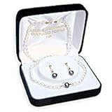 I was disappointed in this set. The packaging is quite impressive-box, gift bag, tissue and a portfolio with certificate of authenticity and care guide-the whole nine yards! I was anticipating something great inside! Too bad the product didn't match up. The necklace is pretty, but so hard to put on because of the TINY clasp. I thought the contrast of the white and black pearls was nice, but I didn't like the gold twisted wire separator pieces between the two. The earrings have the same gold twisted wire pieces, and even though they're 14K, to me they just look fake.Get more detail about 14k Gold, White / Black Pearl Set.