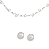 16 Inch Double Strand Cultured Freshwater Pearl Necklace with 6mm White Cultured Pearl Post Earrings Buy Now