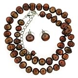 Cheap Pearl Freshwater Cultured Chocolate Brown Necklace Strand 6-7mm 17" with Earrings in Designer Bag Bucasi