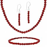 The beads were way too tiny. Not at all what I expected. Had to return it. Did have a good experience returning it.Get more detail about Sterling Silver 4mm Simulated Red Coral Stone Bead Beaded Dangle Hook Earrings Stretch Bracelet Necklace 15-19" Jewelry Set.