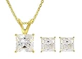 Where To Buy Yellow Gold Overlay Sterling Silver Princess-Cut Cubic Zirconia Pendant w/ Matching Stud Earrings Set